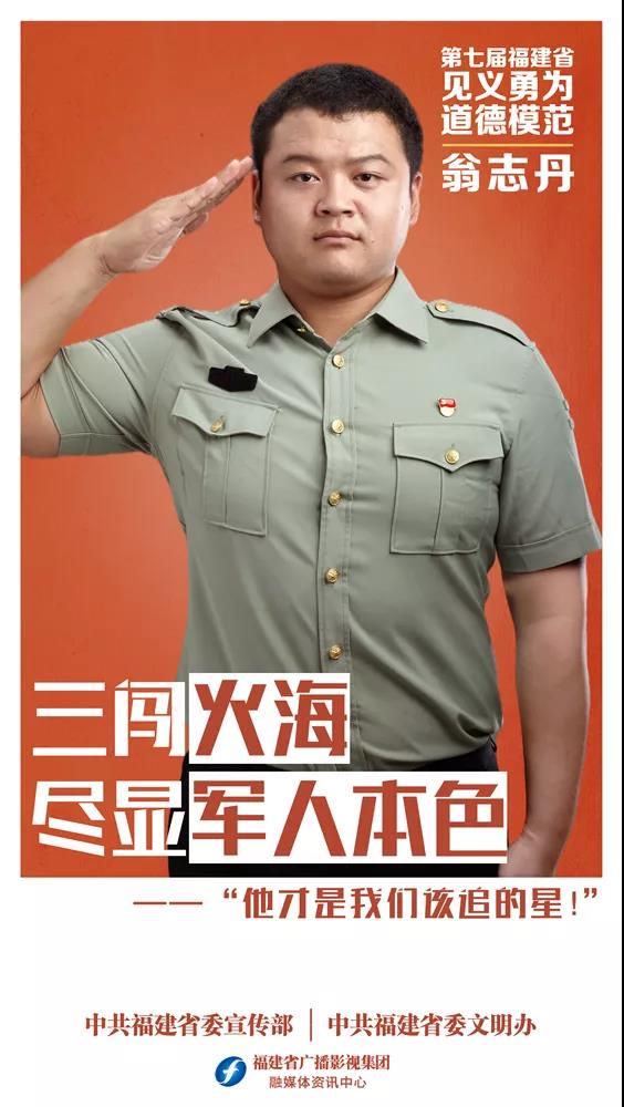 翁志丹,男,1991年11月出生,福清市新厝镇峰头村村民。2020年3月17日上午11时42分,在突发火情危急时刻,他不顾个人安危,三次义无反顾冲入火海救人,而后悄然离开现场。曾获评福清市第二届道德模范、入选“福州好人榜”。