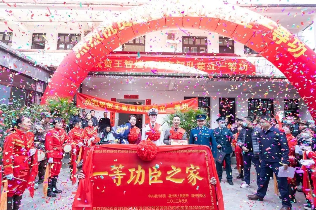 福州市退役军人事务局、市双拥办会同福州警备区政治工作处等部门为一等功臣王智煌家庭送立功喜报、“一等功臣之家”牌匾和慰问金,向立功受奖军人家庭表示热烈祝贺和崇高敬意。