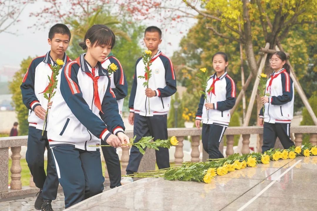 4月2日上午,漳州市华侨中学师生到市烈士陵园祭奠。杨纪翔 摄