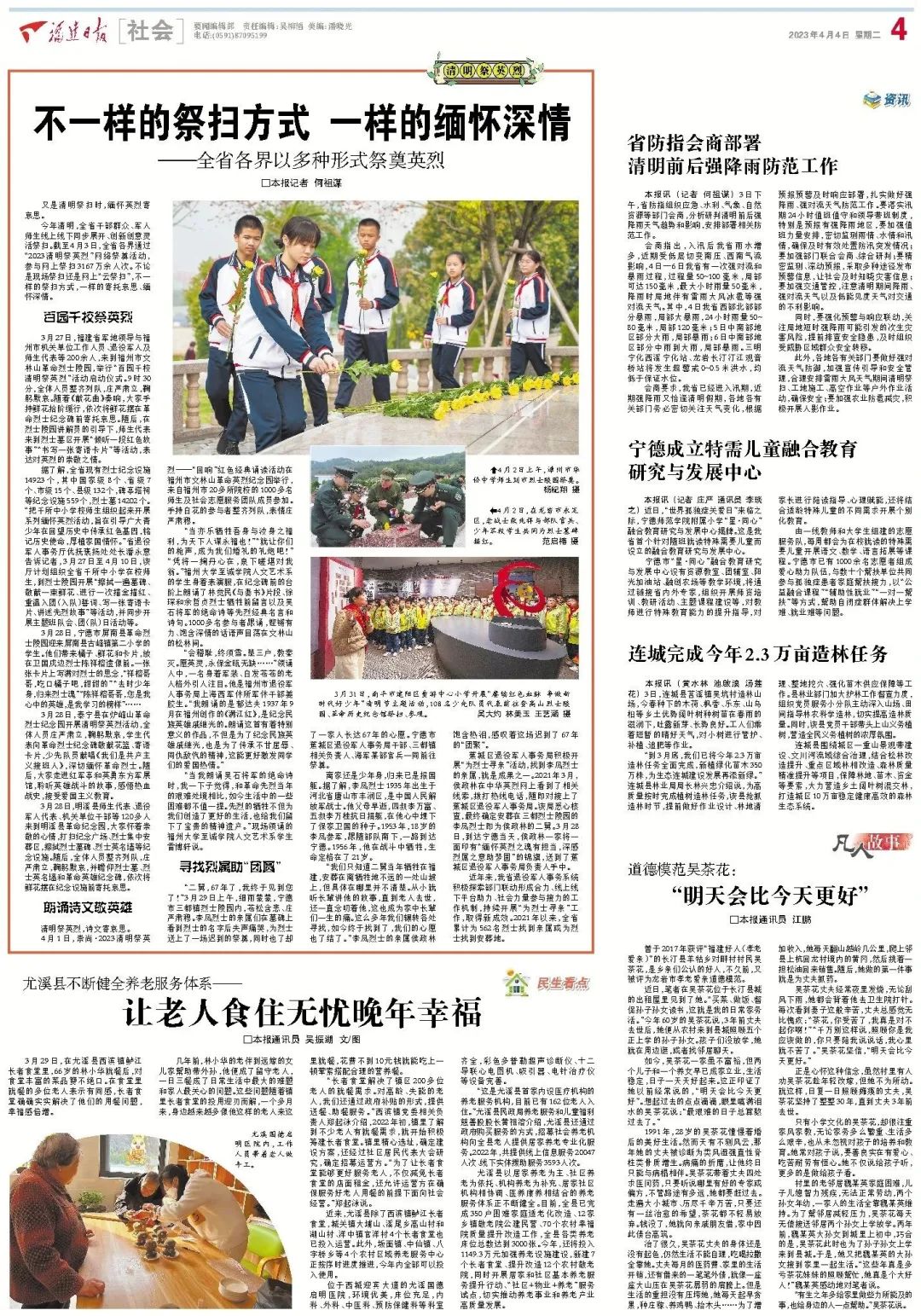 今年清明,全省干部群众、军人师生线上线下同步展开、创新创意灵活祭扫。截至4月3日,全省各界通过“2023清明祭英烈”网络祭奠活动,参与网上祭扫3167万余人次。不论是现场祭扫还是网上“云祭扫”,不一样的祭扫方式,一样的寄托哀思、缅怀深情。