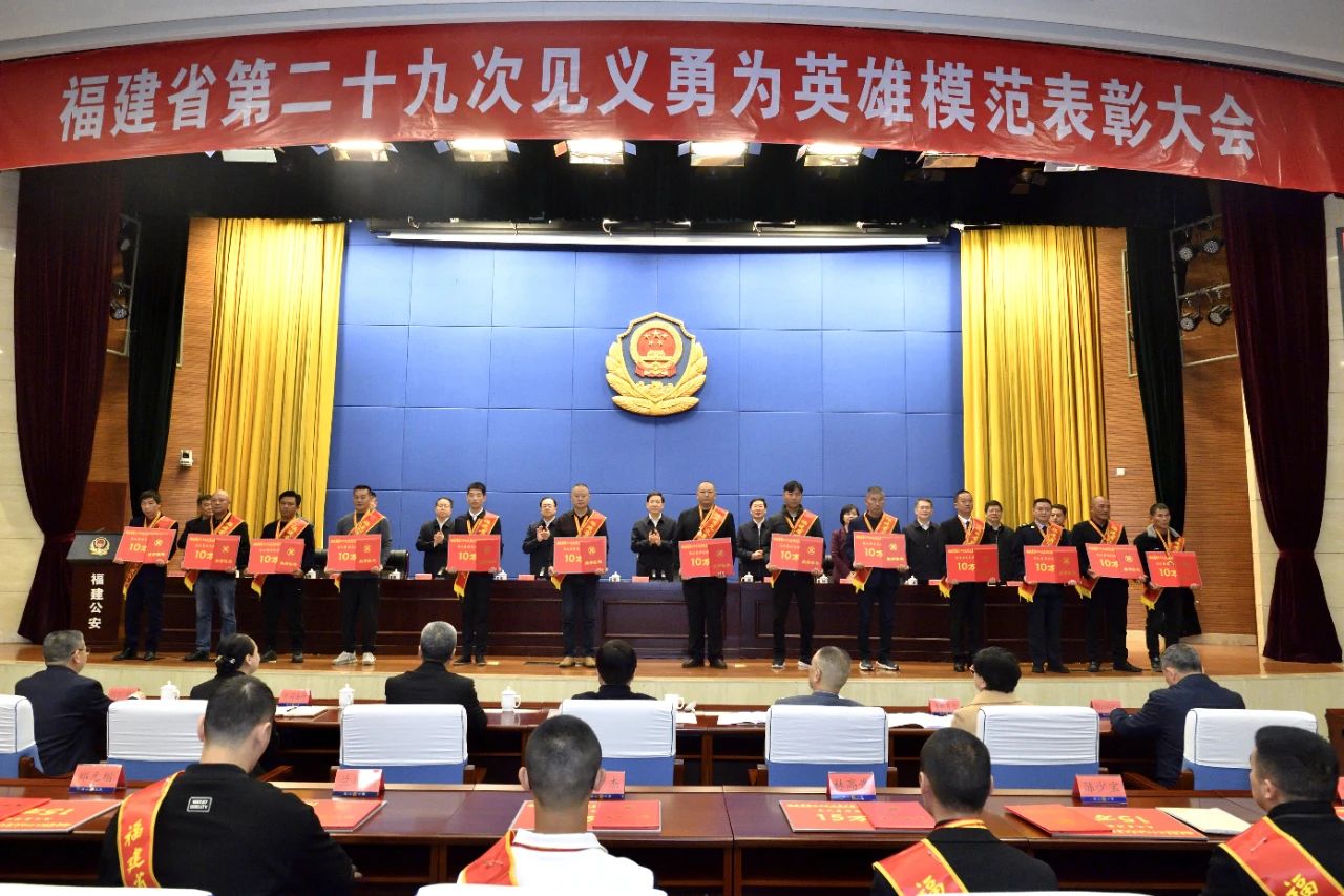12月27日,福建省第二十九次见义勇为英雄模范表彰大会在福州召开。省委常委、政法委书记黄海昆,省人大常委会副主任檀云坤,副省长、省公安厅厅长、省见义勇为人员奖励和保护工作委员会主任李建成,省政协副主席黄玲出席会议。