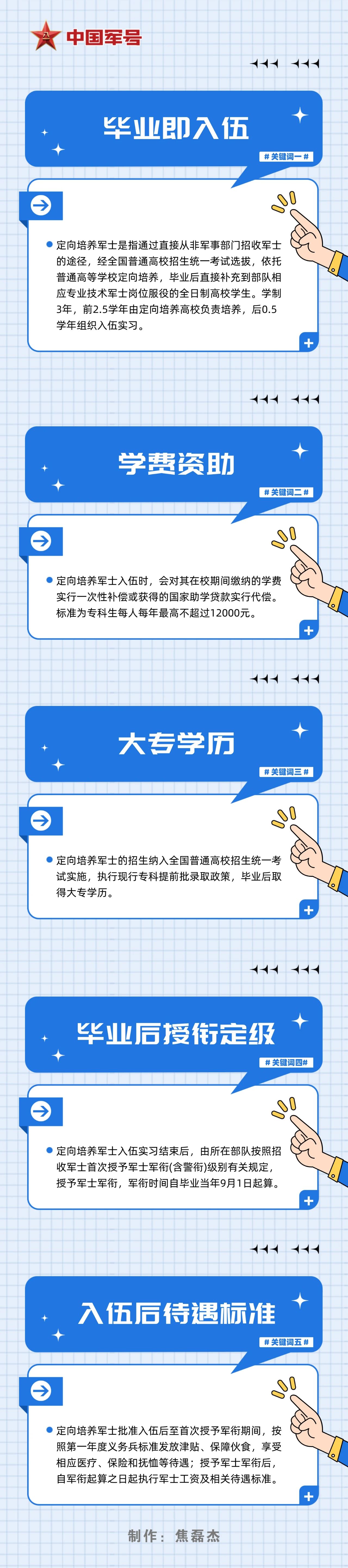 5月27日,2024年全国定向培养军士招生工作在各地陆续启动。今年共有48所地方高校面向全国31个省(自治区、直辖市)为解放军和武警部队招收定向培养军士23600人(含女军士217人)。