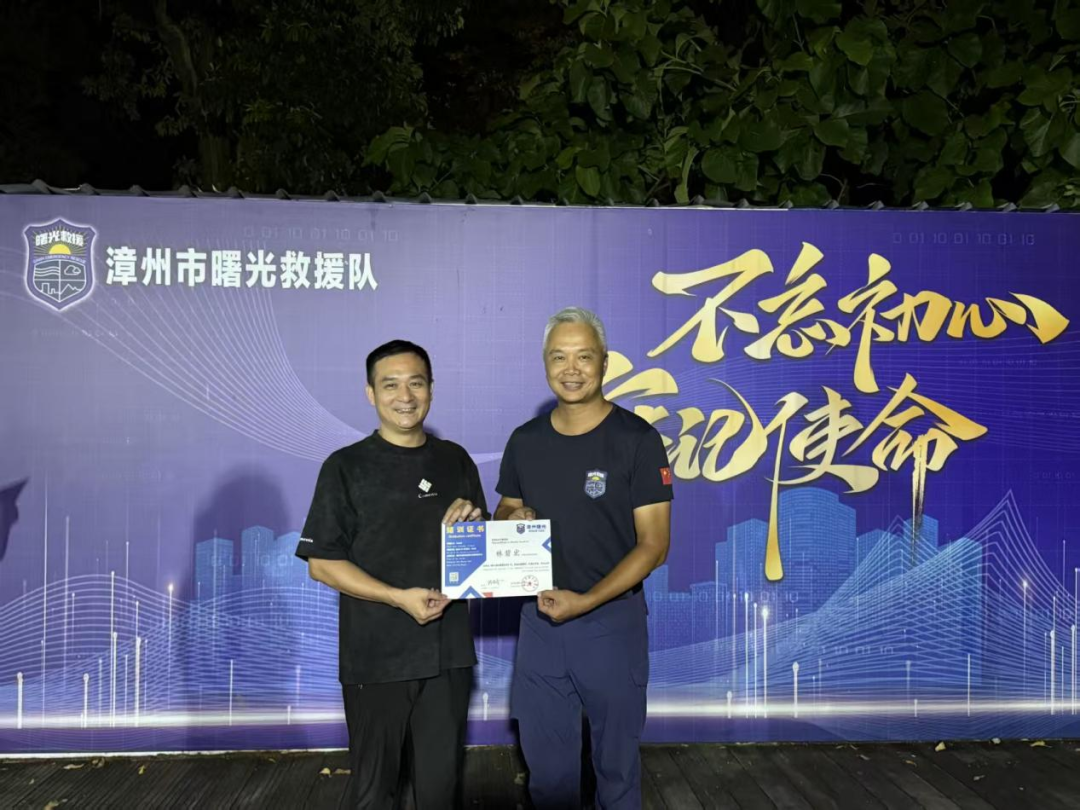 工作之余,林碧宏的服务半径不断扩大。他加入了漳州曙光救援队,利用业余时间学习应急救援技能,只为在群众需要时能“顶得上”。2025年10月,作为漳州曙光的一员,他参加了福建省交通运输行业内河水上应急救援技能比武大赛,和队友高效完成内河舟艇倾覆自救、船员水上接力泅渡等3个实战项目,获得团体三等奖,“强度很大,很耗体力!但是救援群众就是要快速度,高效率!”