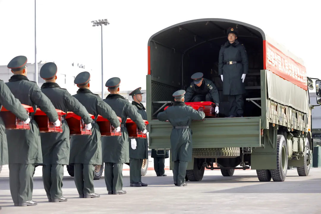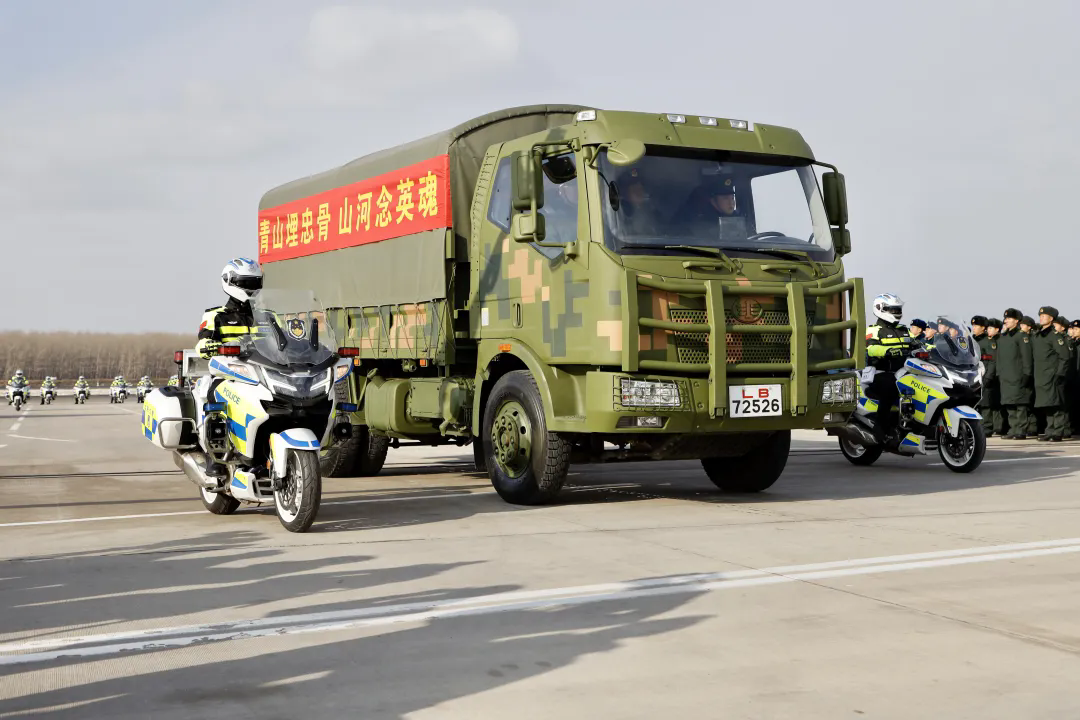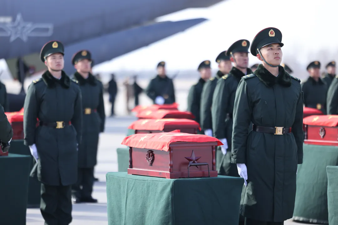 11月28日上午,43位志愿军烈士英灵及495件遗物由我空军专机从韩国接回并护送至辽宁沈阳。来源:新华社