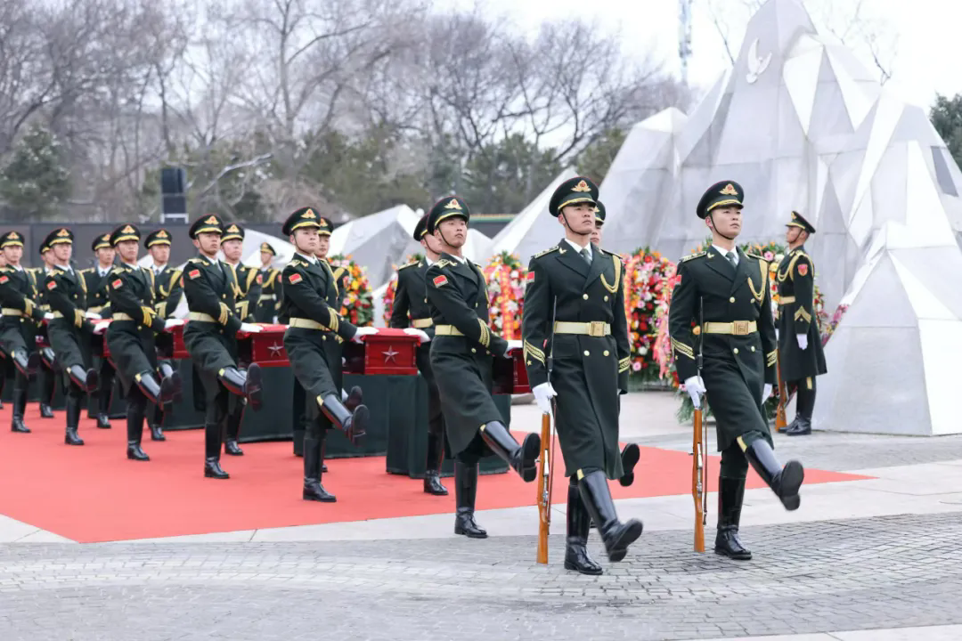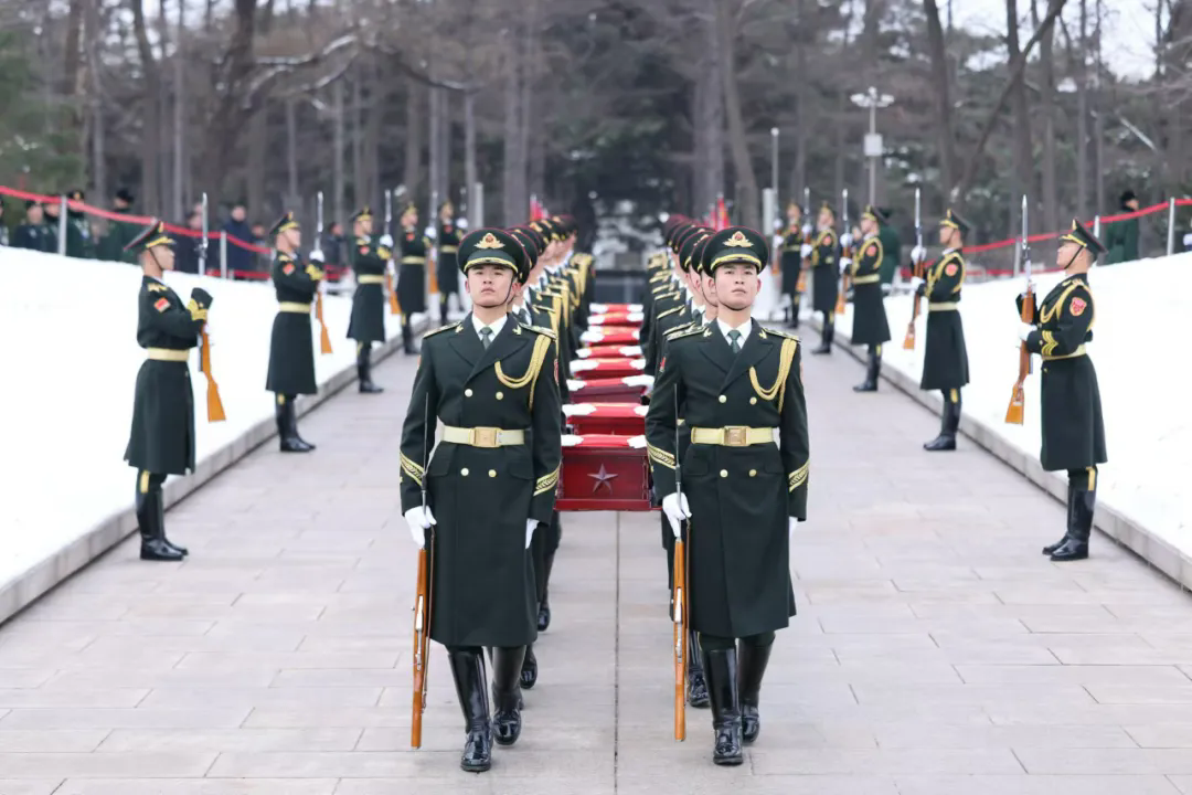 11月29日上午,第十一批在韩中国人民志愿军烈士遗骸安葬仪式在沈阳抗美援朝烈士陵园举行,43名为保家卫国英勇牺牲在异国他乡的志愿军烈士英灵70多年后,回到中华大地安息。退役军人事务部党组书记、部长裴金佳出席仪式并致祭文。辽宁省委书记、省人大常委会主任郝鹏出席仪式,辽宁省委副书记、省长李乐成主持仪式。解放军仪仗司礼大队、北部战区陆军某旅、武警部队军乐团奉命执行安葬仪式礼兵任务。