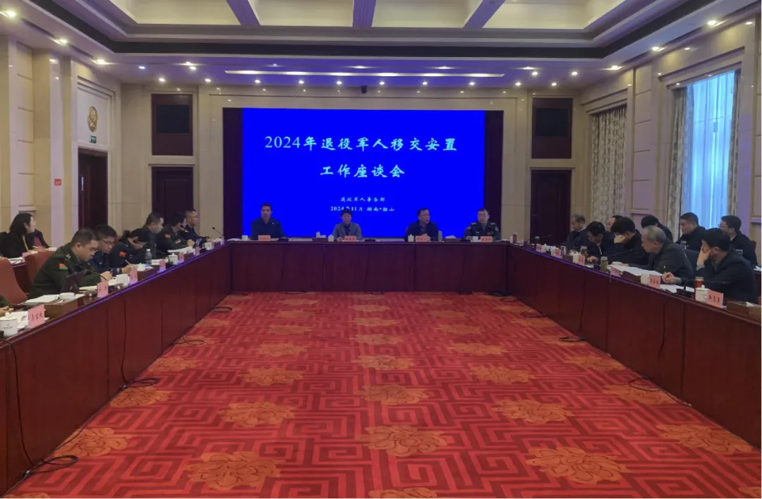 近日,2024年退役军人移交安置工作座谈会在湖南湘潭召开。 会议深入学习贯彻党的二十大和二十届二中、三中全会精神, 认真学习领会习近平总书记关于退役军人工作重要论述,结合贯彻《退役军人安置条例》,全面梳理新情况、新问题,研究解决对策,谋划下步发展思路和工作举措,推动退役军人移交安置工作高质量发展。