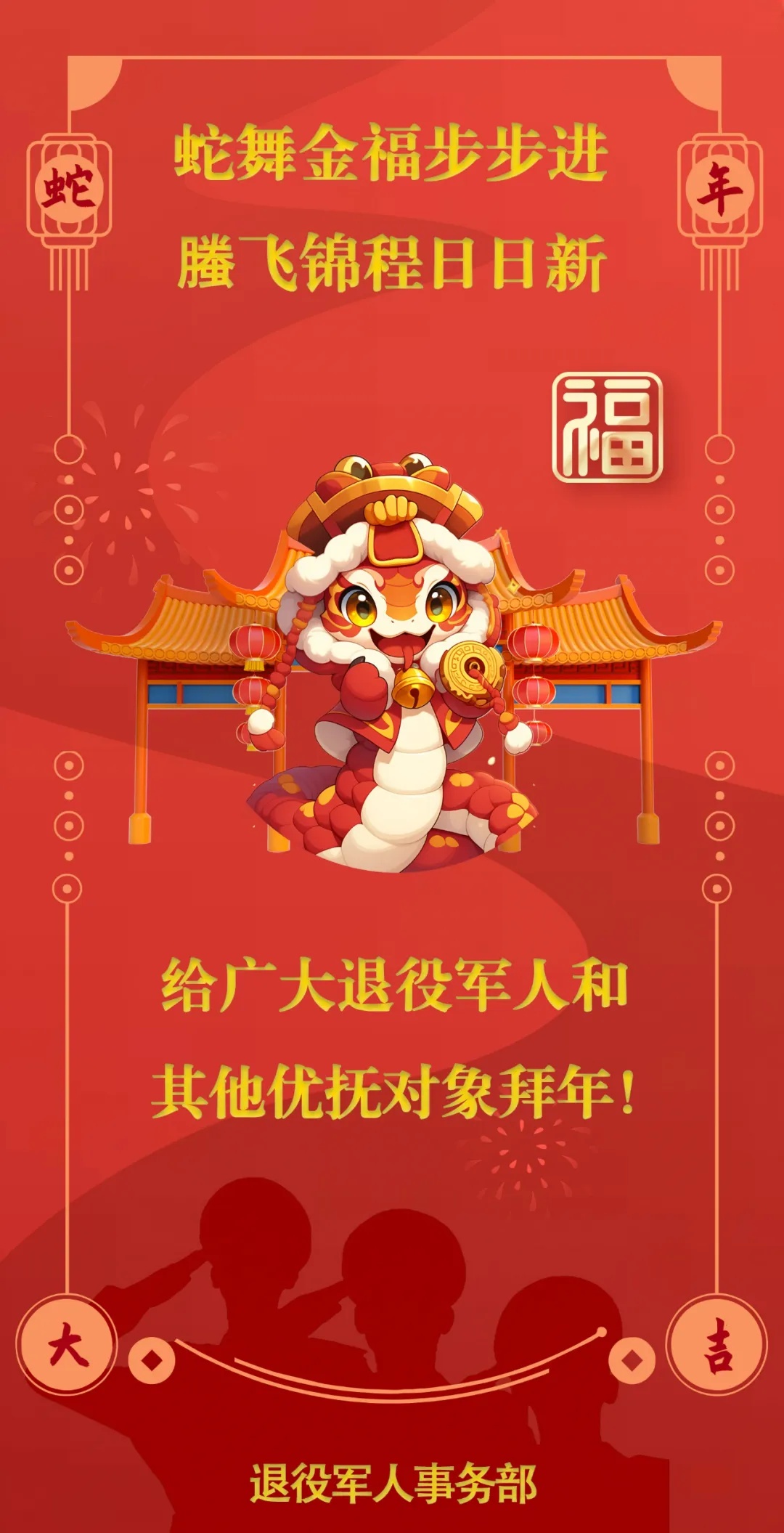 春节海报:给广大退役军人和其他优抚对象拜年!