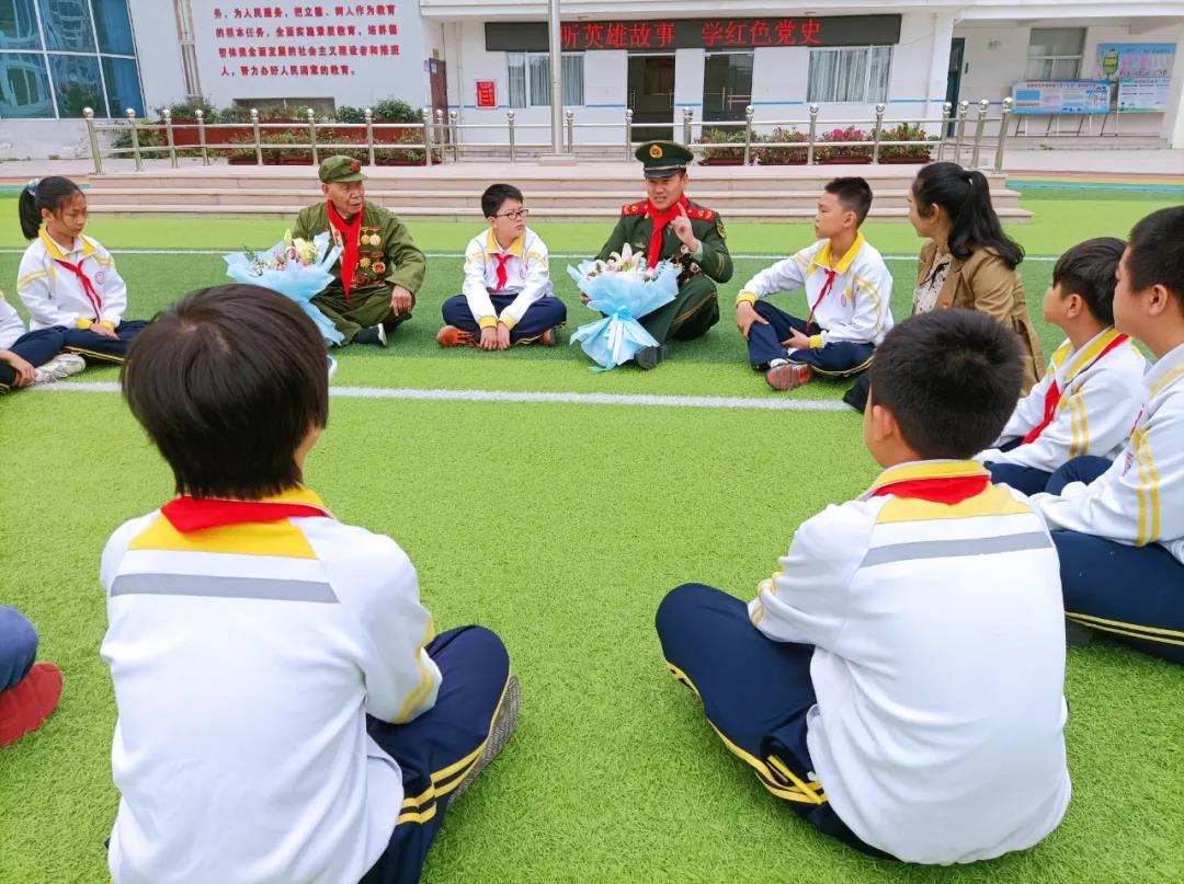 两名功臣的先进事迹博得现场阵阵掌声。“向英雄致敬、向英雄学习、向英雄靠近,从现在做起,努力学习成长,积极进取成才,接过先辈的接力棒,奋力前行不停歇,在祖国将来的建设中挑重担挑大梁,努力成长成为一名合格的社会主义接班人。”少先队员代表的决心,声音虽略显稚嫩却是那样的铿锵有力。