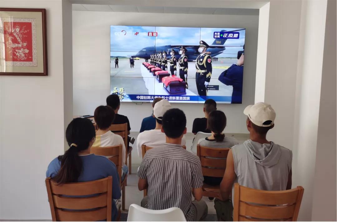 湖里区退役军人服务中心组织人员观看第八批在韩中国志愿军烈士遗骸交接仪式