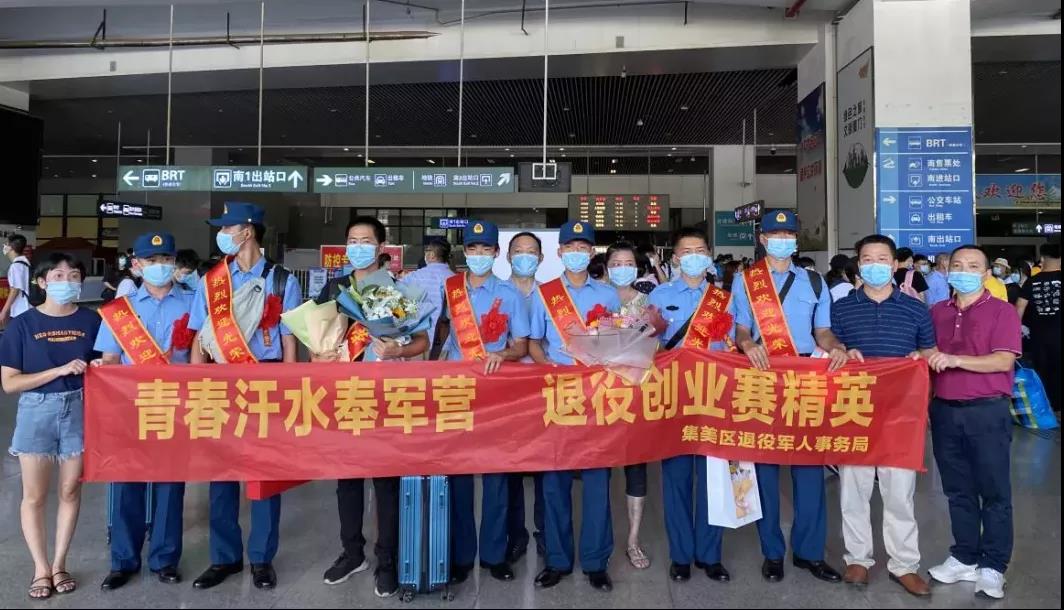 近日,集美区退役军人局组织人员至厦门北站设立退役军人返乡接待站,举行迎接仪式热烈欢迎辖区内退役军人光荣回家。落实迎接退役军人“一声问候、一条绶带、一束鲜花、一张联系卡、一份政策解答”等“五个一”系列服务,让退役军人在出站后第一时间感受到家乡的温暖,营造尊重退役军人的浓厚氛围。