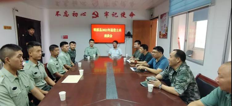 明溪县退役军人局组织召开座谈会,邀请县人武部领导、驻明部队现役军人代表、全国模范退役军人与退役士兵交流谈心、分享经验,勉励退役士兵秉承部队光荣传统和过硬作风,不忘初心,砥砺前行,为家乡建设贡献力量、再创辉煌。下一步,将开展做好退役士兵集中适应性培训、全日制高职扩招提升学历、发放退役士兵家属优待金和地方经济补助金等工作,增强退役士兵荣誉感和获得感。