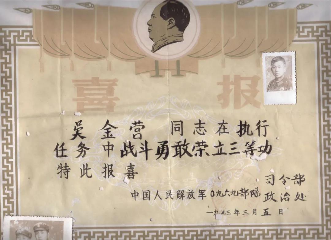 吴金营在战场上的立功受奖证书