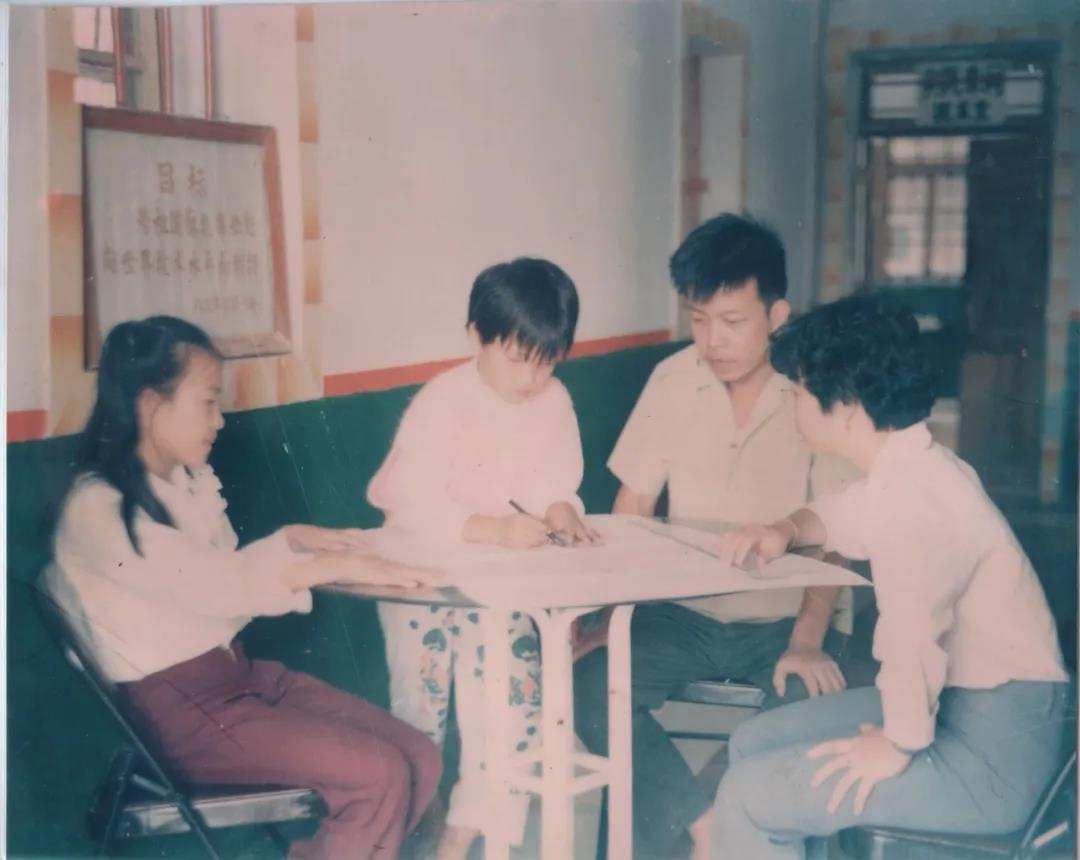 学校创立之初,吴金营一家就以校为家。图为吴金营与爱人在学校内给两个女儿辅导功课。