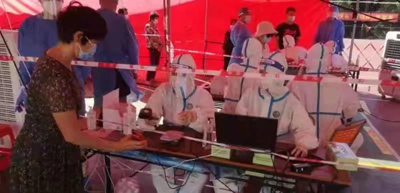 △林晋在同安区核酸检测现场,负责信息录入工作(右一)