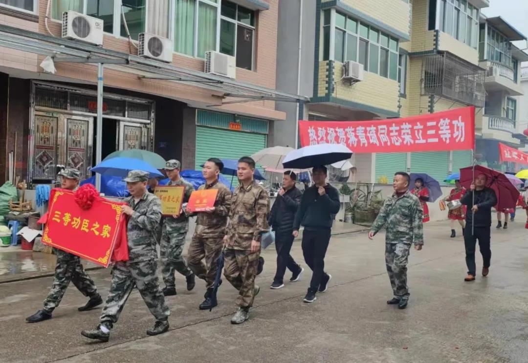 当天,华安县还敲锣打鼓将三等功喜报、慰问金送到现役军人蒋青琦家中。