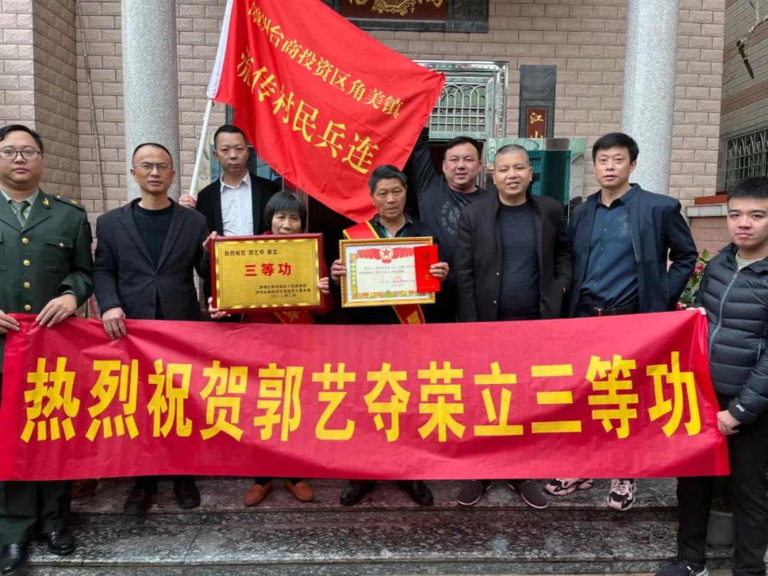 2月18日,漳州台商投资区军地“送喜报”小分队来到现役军人黄凯俊、郭艺夺、黄志杰家中送三等功喜报。在黄凯俊家门口,舞狮队摆上阵势、送上祝福,街坊邻居纷纷出来围观祝贺。