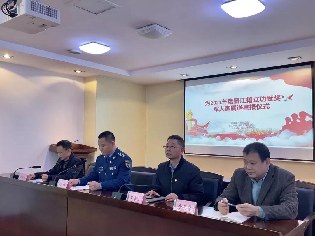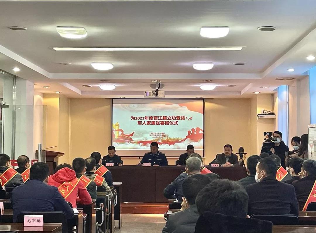 2月17日上午,晋江市人武部、退役军人事务局联合开展为晋江籍立功受奖军人家庭送喜报活动。