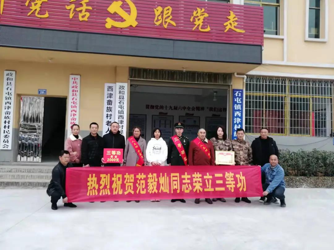 2月16日,政和县人武部、县退役军人事务局、石屯镇党委联合为荣立三等功的范毅灿、胡世亮家属送上党和政府的问候、慰问金及立功喜报。