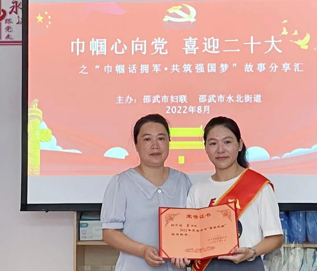 为深入广泛开展拥军优属工作,不断增强军人军属的荣誉感、获得感、幸福感。8月23日,邵武市妇联、水北街道在水东社区共同举办“巾帼心向党喜迎二十大”之“巾帼话拥军·共筑强国梦”故事分享汇,活动邀请了2022年南平市“最美军嫂”刘芳分享她的小家故事。市妇联党组书记、主席饶清香,市人民武装部和市双拥办工作人员以及20余位乡亲邻里参加活动。