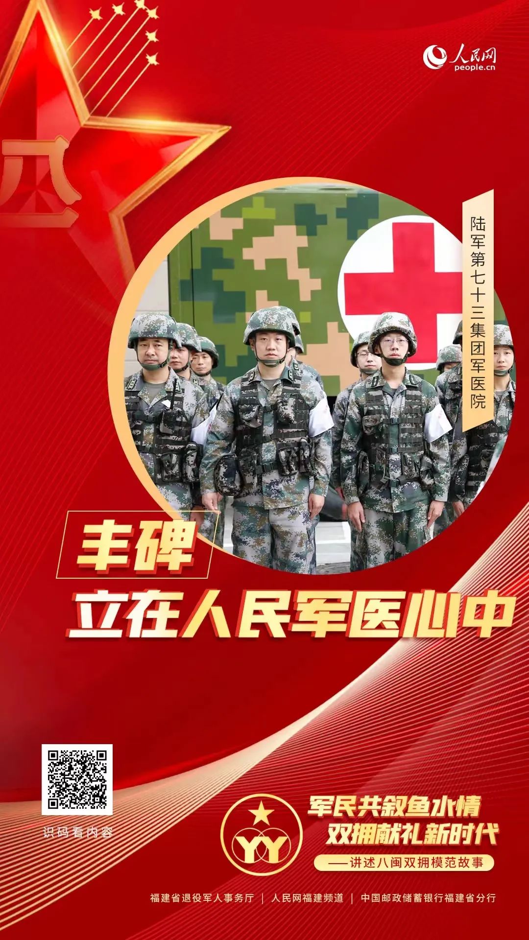 “军爱民、民拥军,军民鱼水一家亲。”福建,是全国唯一所有设区市连续五届获评双拥模范城(县)的省份,一个个军爱民、民拥军的生动故事在八闽大地不断涌现。为唱响闽山闽水间的“爱我人民爱我军”军民情主旋律,福建省退役军人事务厅联合人民网福建频道、中国邮政储蓄银行福建省分行共同推出“军民共叙鱼水情双拥献礼新时代”主题宣传活动,从“新时代八闽双拥故事”看福建如何续写新征程上的双拥新篇章。