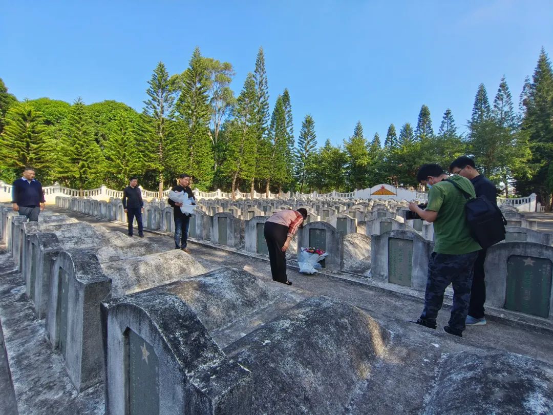 参观学习中,唐清一行先后瞻仰了东山战斗烈士纪念碑、公安八0团、第三野战军墓区,共同缅怀烈士,并在阜阳籍烈士范孟生、邵传尧墓前献上鲜花、鞠躬默哀。随后,在东山战斗纪念馆观看东山保卫战纪录片,听取该馆负责人蔡东成的情况介绍。