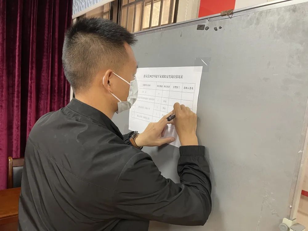 惠安县深入贯彻党的二十大关于退役军人工作重要部署,选岗工作完成后,将继续推进“一站式”安置服务,为随军家属做好安置介绍、档案移交、入编入职等工作,聚力解决军人“三后”问题,让军人军属更暖心、更安心、更放心。