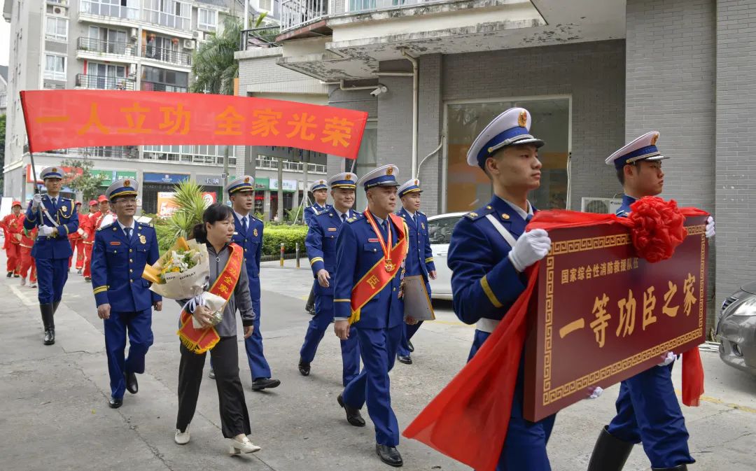 活动中,福州市消防救援支队政委叶青锋宣读了改革转制以来福州市队伍荣立二等功以上表彰奖励先进个人的通报,与会领导向立功受奖人员及家属颁发了奖牌、奖章、证书和奖金,并送上鲜花。全国应急管理系统二级英模涂颜淼同志代表受表彰的先进个人作了表态发言。