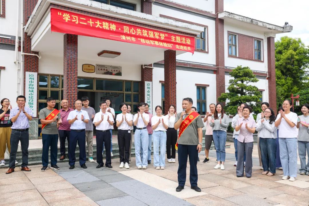 “学习二十大精神,同心共筑强军梦”。6月27日,漳州市“移动军事体验站”首次走进漳州市风景园林中心,面向机关干部职工开展国防教育。以此纪念延安双拥运动80周年,推动全民国防教育走深走实。漳州市住建局、漳州市风景园林中心50余人参加活动,漳州市退役军人事务局党组成员、副局长杨裕勇致词。