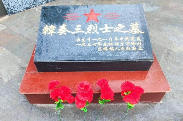 韩奏三烈士生于1910年,江西省万年县人,中共党员,1928年6月,在弋阳加入土地革命军,担任连指导员;1935年冬,担任闽北独立师第三团政治委员;1936年冬,担任闽北独立师第一纵队及第一支队政治委员。1937年春,韩奏三同志率闽北独立师第三纵队第七支队回师闽北,在建瓯县河岭村遇敌,壮烈牺牲,当地村民把韩奏三同志遗体埋葬。2019年河岭村党支部开展“青山寻忠骨”主题党日活动,重新找回韩奏三烈士的遗骸装入新的陶罐并竖立墓碑。2023年年初,建瓯市退役军人事务局将韩奏三烈士墓纳入年度整修计划。