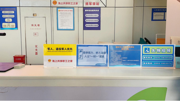 为方便现役军人、退役军人出行,弘扬拥军优良传统,近日,由厦门市湖里区退役军人事务局、厦门象屿集团邮轮母港联合打造的厦门国际邮轮中心拥军驿站在码头服务大厅成立。