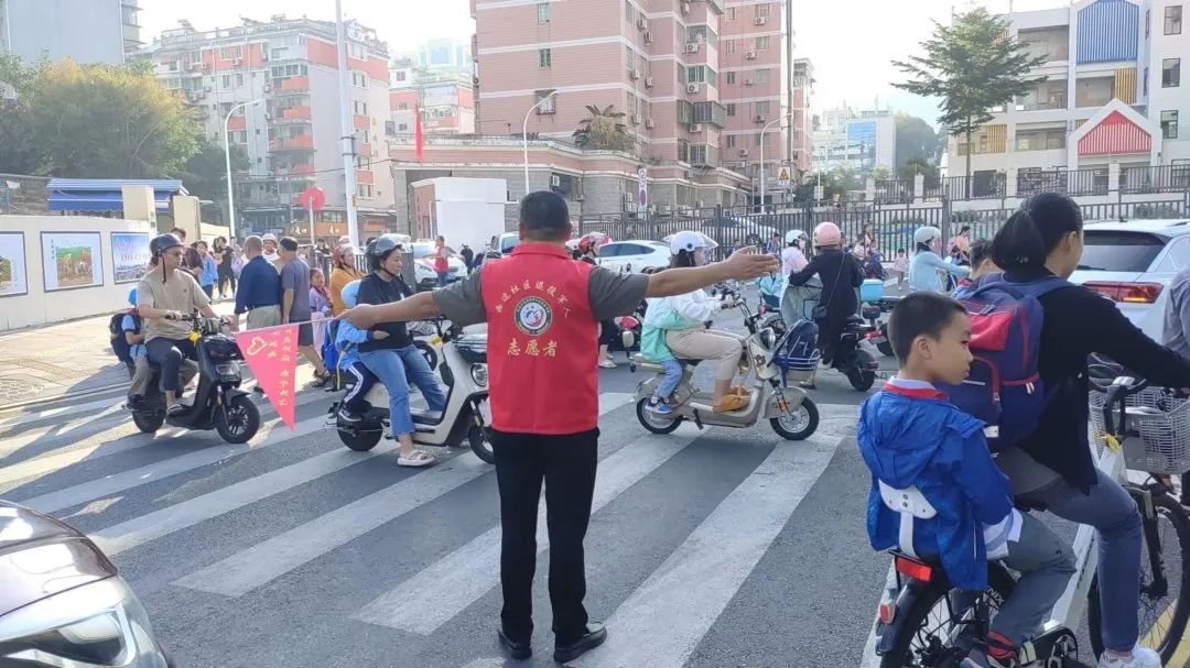 这些身穿红马甲的老兵志愿者们,不论天晴下雨,每天清晨总会准时出现在路口。他们手持红旗、信号棒等显著标识,指挥着过往的车辆和行人,同时也保障着大家的安全通行。“我的公司就在西边社区,看着孩子们能平安入校,我感觉非常有成就感。”老兵志愿者陈志刚是一家琴行老板,他每周要值两次班,谈到义务执勤他感到很骄傲。