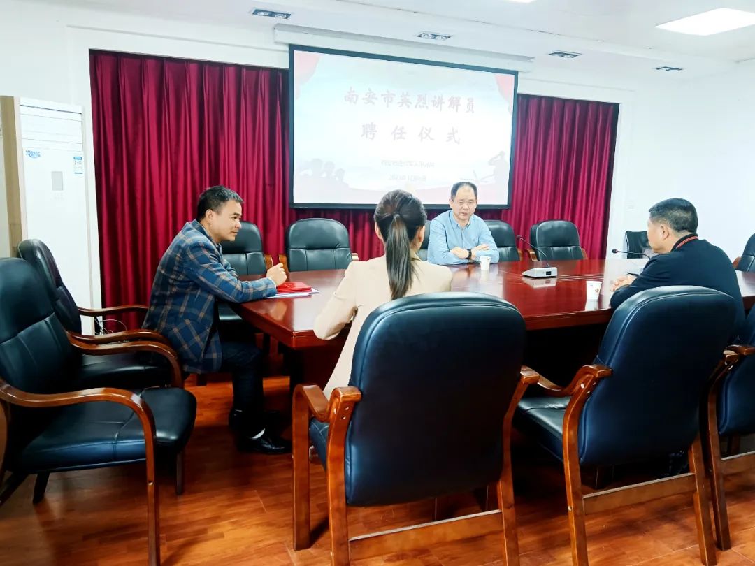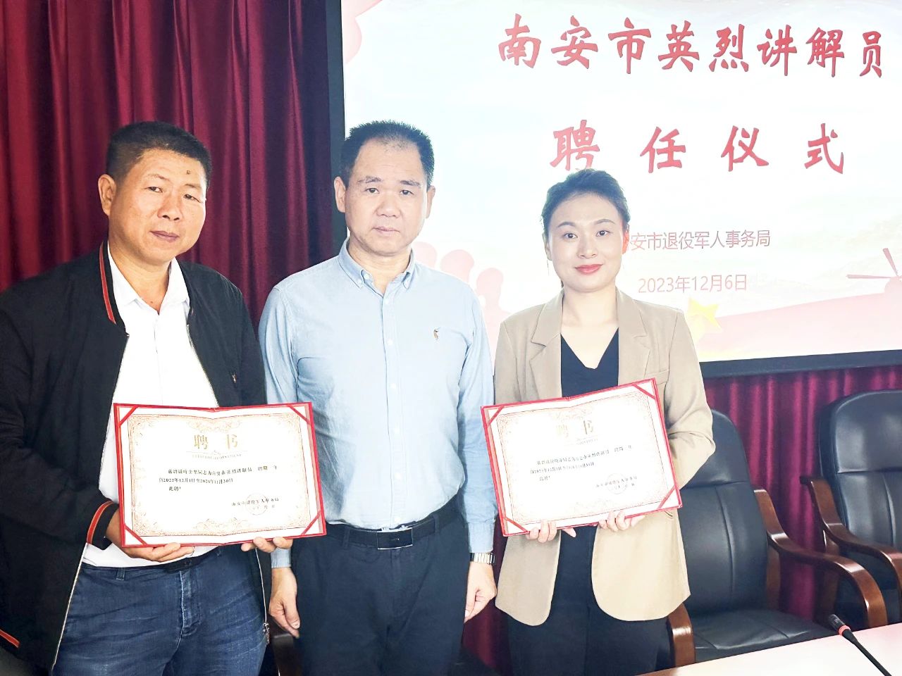 12月6日,南安市退役军人事务局举行南安市英烈讲解员聘任仪式。南安市退役军人事务局党组成员、二级主任科员吴志飞为钟晓萍、刘丽红、郭建生、叶奕坚、陈晓燕等五位英烈讲解员颁发聘书,并就如何更好地发挥英烈讲解员的作用进行了座谈交流。