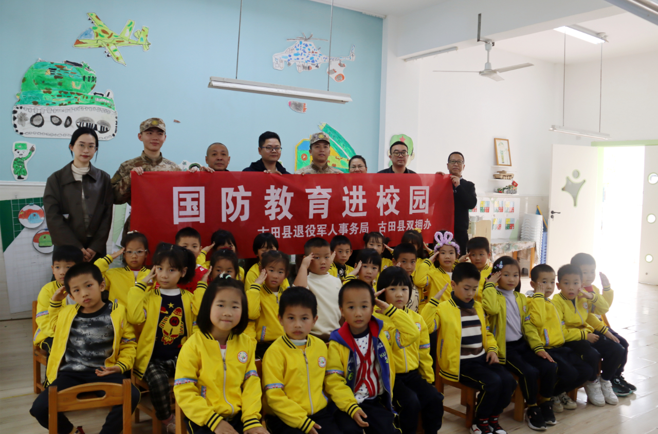 为大力弘扬爱国主义精神,加强国防教育,12月11日,古田县退役军人事务局、国动办、城东街道、县委宣传部、驻古某部队联合开展国防教育进校园活动,帮助同学们普及国防知识,了解国防含义以及国防建设的重要性,在他们心中种下爱国梦的种子。