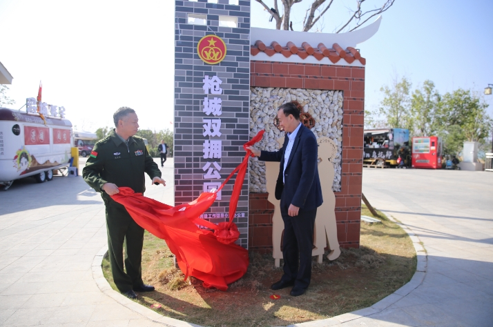 1月4日上午,枪城双拥公园落成揭牌仪式举行,泉州市退役军人事务局局长、泉州市双拥办主任唐良元和丰泽区委常委、人武部政委方红兵共同为公园揭牌,泉州市退役军人事务局副局长刘洪、丰泽区政府副区长刘华东,丰泽区各街道双拥工作分管领导、泉州市东海投资管理有限公司负责人及泉州市公园管理中心负责人等出席活动。