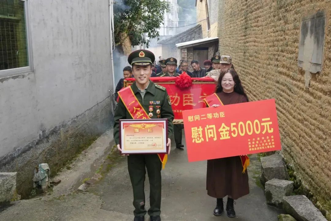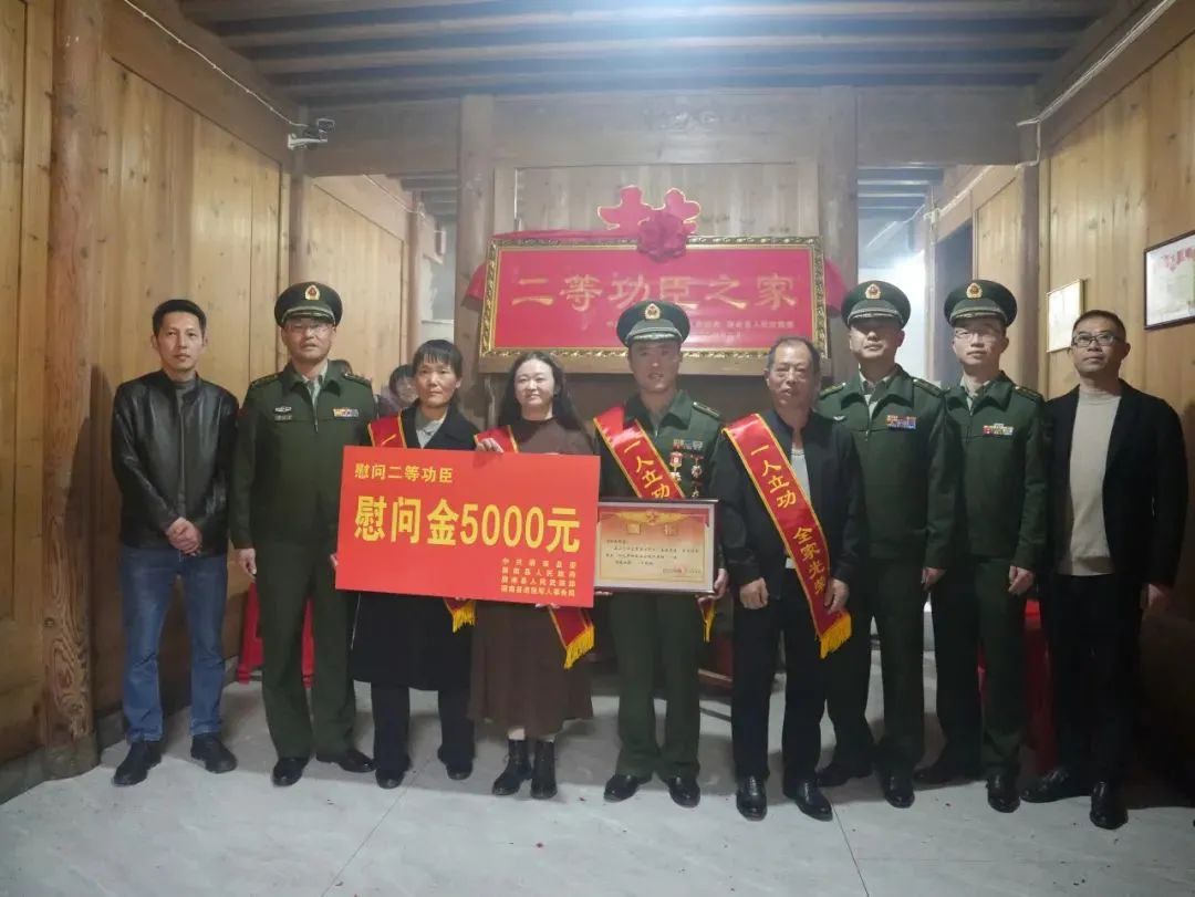 2月1日,第72集团军某旅政治工作部、屏南县人武部、屏南县退役军人事务局等军地相关领导前往屏南县棠口镇仕洋村,为荣立二等功的现役军人张林龙家庭送上立功喜报和慰问金,并颁发“二等功臣之家”牌匾,让军人家属共享这份荣耀和喜悦。