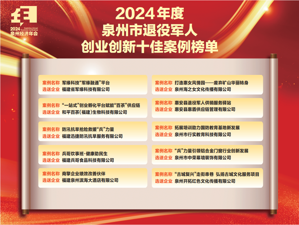 揭晓!看看2024年度泉州市退役军人创业创新十佳案例都是哪些