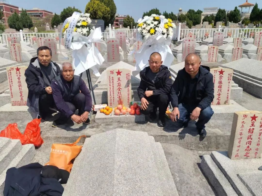 清明节前夕,81岁的王应举在儿子王西彪等亲属的陪同下,从安徽阜阳辗转来到薛岭山烈士陵园。在陵园管理员老叶的引导下,他们带着家乡的水果和祭品,为长眠异乡67年的亲人献上哀思。抚摸着哥哥的墓碑,王应举数次痛哭失声。