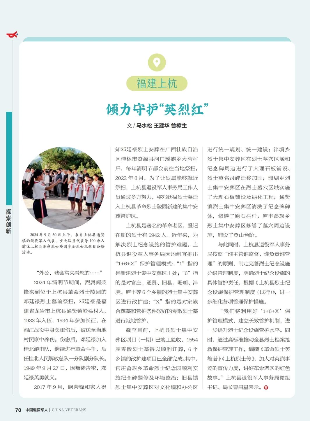 “我们将利用好‘1+6+X’保护管理模式,建立长效管护机制,进一步提升烈士纪念设施管护水平。同时,通过高标准推动全县烈士档案抢救保护管理工作,编撰《革命烈士英雄谱》《上杭烈士传》,加大对英烈事迹的宣传力度,讲好革命老区的红色故事。”上杭县退役军人事务局党组书记、局长曹昌星表示。