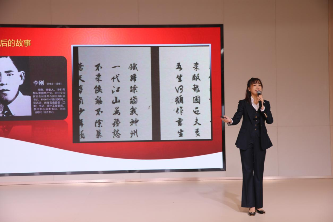 “铁蹄蹂躏我神州,一代江山万种愁。不杀倭寇不除暴,苍天辜负少年头,他在自家的墙壁上愤恨地写下‘打倒土劣’四个大字,毅然决然地走上了革命的道路。”红色故事宣讲团成员、石狮市祥芝镇湖西村驻村第一书记杨馨以《家书里的华侨英烈》为题,将中共泉州中心县委首任书记李刚舍家为国的英勇事迹娓娓道来。