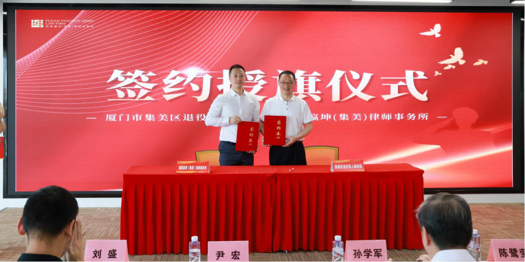 4月17日上午,厦门市集美区退役军人事务局与福建瀛坤(集美)律师事务所举行《崇军合作协议》签署仪式,设立“福建瀛坤(集美)律师事务所退役军人服务驿站”,授旗成立厦门市首家由退役军人律师组成的“一鹭先锋”法律工作者志愿服务队。