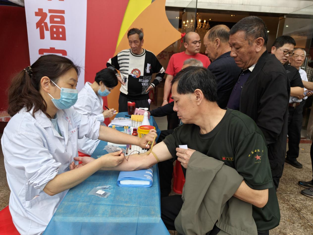 21日上午,文化馆广场的医疗巡诊区成为活动焦点。省荣军医院医疗队把载着先进设备的医疗巡诊车开进广场,为老兵们提供信息采集、抽血化验(包含血常规、生化全套、乙肝两对半、幽门螺杆菌尿素酶抗体定性检测、肿瘤标志物筛查等60余项检验项目)、心电图检查、腹部彩超、X光、发放健康宣传手册等多而实的检查服务,并联合第900医院干部一科、全科医学科两位专家现场为老兵进行健康查体并给出健康指导建议。