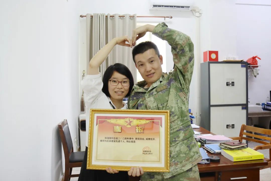 二十载军旅生涯,他先后荣立三等功、获评三级表彰,更将优秀共产党员、优秀基层干部、后勤保障先进个人等荣誉悉数收入囊中。而与他青梅竹马的妻子林文娟,始终在时光长河中默默守候。如今虽同处一城,但各自忙碌的工作让这对璧人聚少离多。当林文娟收到丈夫的表彰喜报后,特意将这份荣光珍藏数月,在寓意“我爱你”的特殊日子里,将这份承载着荣誉与爱意的喜报递到丈夫手中,为这对军人夫妻的深情写下最动人的注脚。