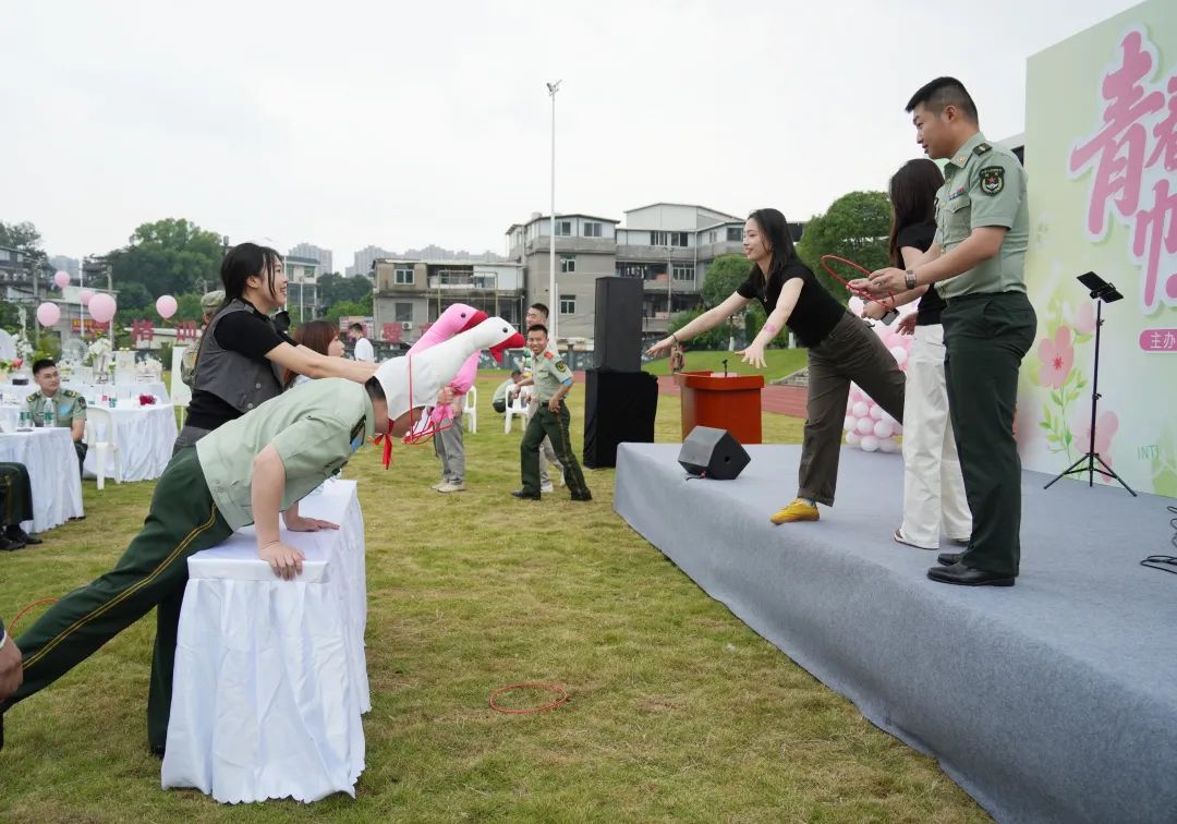活动在欢快的乐队表演中拉开序幕。在“爱情寻宝”环节,各组嘉宾协作搜寻指定物品,展现策略与默契;“鹿角套圈”挑战中,头戴充气鹿角的嘉宾纷纷比拼,引发现场阵阵欢笑,“多肉微景观制作”让军地青年在合作中加深默契。