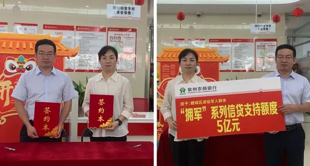 据了解,泉州农商银行鲤城支行拥军驿站将精准对接军人军属、退役军人及其他优抚对象的多样化需求,提供政策咨询、“一站式”金融服务等,着力构建集创业融资、财富增值、就业支持、慰问帮扶等功能于一体的综合服务平台。仪式上,鲤城区退役军人事务局与泉州农商银行签署拥军战略合作协议,泉州农商银行向鲤城区退役军人群体提供“拥军”系列信贷支持额度5亿元授信。