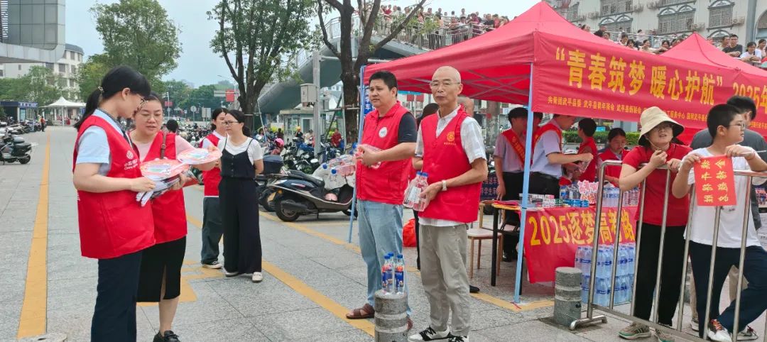 他们迅速化身为多面手,配合交警疏导车流,保障送考车辆即停即走;为考生和家长发放矿泉水、备用文具,提供贴心服务;穿梭人群,用温和话语缓解考生紧张情绪。