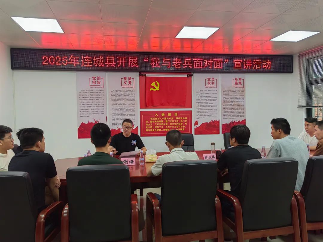 为深入贯彻上级关于退役军人服务保障体系建设措施要求,强化思想政治教育引导,扎实组织开展退役军人返乡“第一课”。近日,龙岩市连城县退役军人事务局组织2025年符合政府安置条件的退役军人开展“我与老兵面对面”宣讲活动。