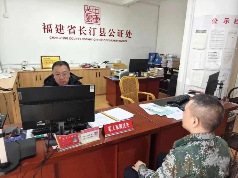 近年来,长汀县公证处针对军人休假时间短、任务紧急等特点,推出“三优先”服务即优先受理、优先审核、优先出证,特殊情况可提供“当日办结”甚至“即时办结”。自2022年设立“军人军属服务专窗”以来,为军人军属办理各类公证事项28件,涵盖购房委托、遗产继承、亲属关系等高频公证事项。