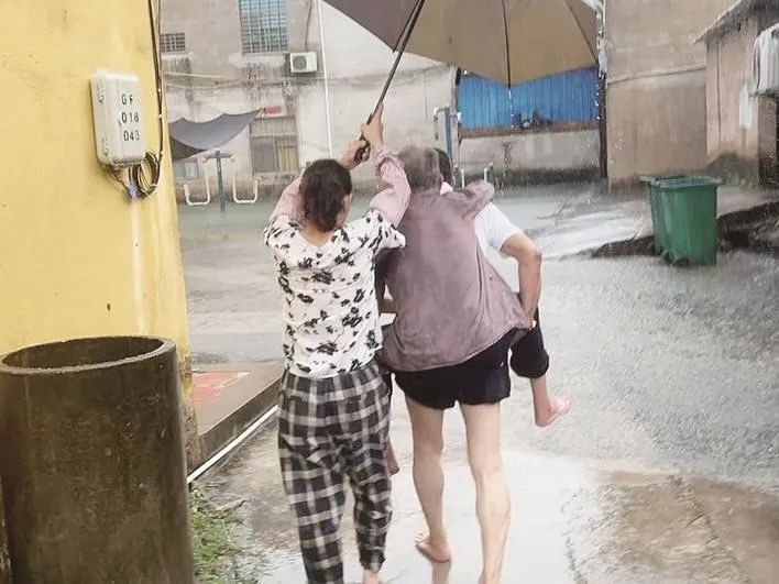 暴雨如注,积水猛涨,部分老旧房屋和低洼厂房被淹,居民被困。石亭街道的退役军人同社区工作人员一起火速投入救援。他们蹚过深水,挨家挨户排查险情,转移物资,疏散群众。