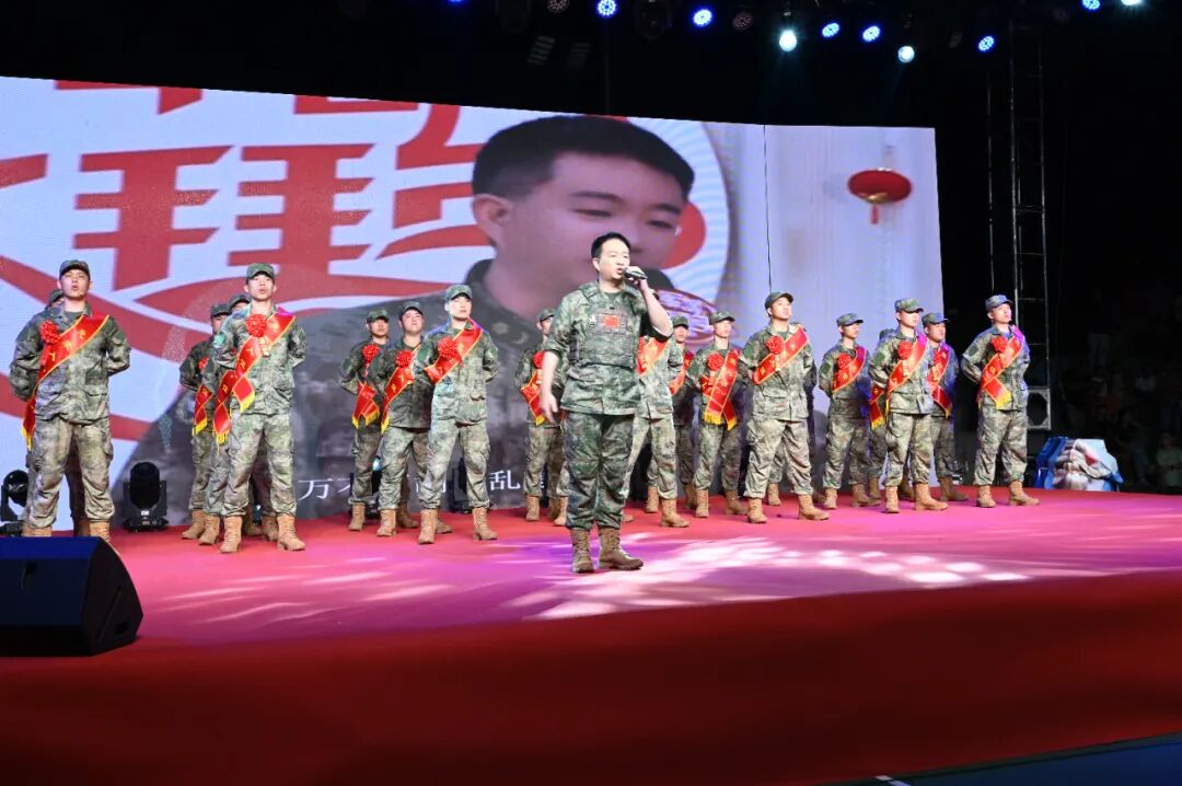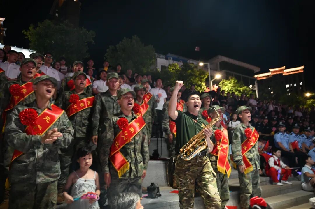 晚会开始前,新兵们身披绶带、胸戴红花,从县人武部出发步行巡游至灯光球场。整齐的步伐、坚定的信念,引得沿途群众纷纷驻足观看。晚会最终在细雨中落下帷幕,但歌声与热情未散。新兵与老兵相互敬礼告别,眼中写满不舍与期待。观众迟迟不愿离去,仍在回味晚会的精彩瞬间。