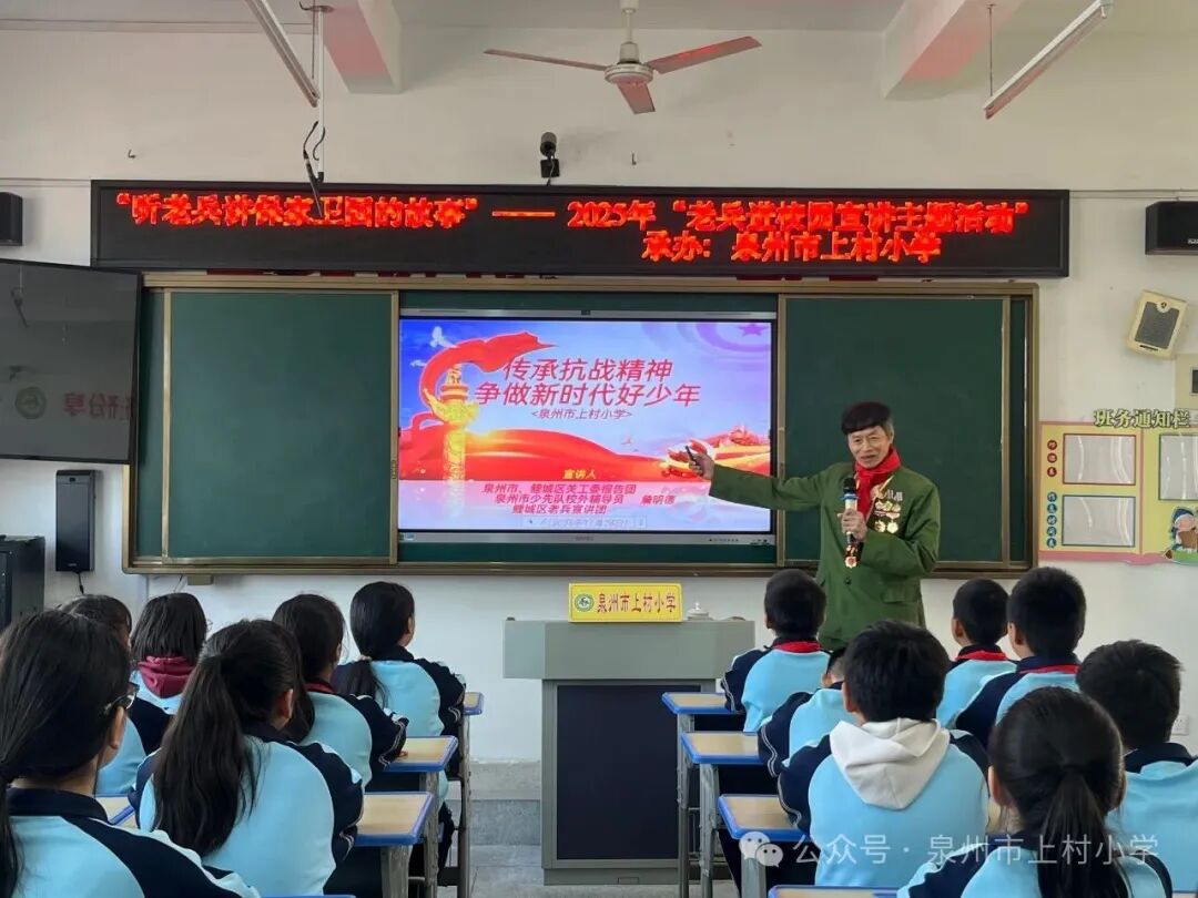 11月26日上午,一等战功获得者、“泉州市最美退役军人”詹明德走进泉州市上村小学开展主题宣讲。此次活动由共青团鲤城区委员会、鲤城区教育局、鲤城区退役军人事务局主办,泉州市上村小学承办。少先队员们与辅导员怀着无比崇敬的心情欢聚一堂,共同聆听战斗英雄的传奇故事,感受退役军人的初心使命。现场响起的阵阵热烈掌声,是大家对他最诚挚的问候与最崇高的敬意。